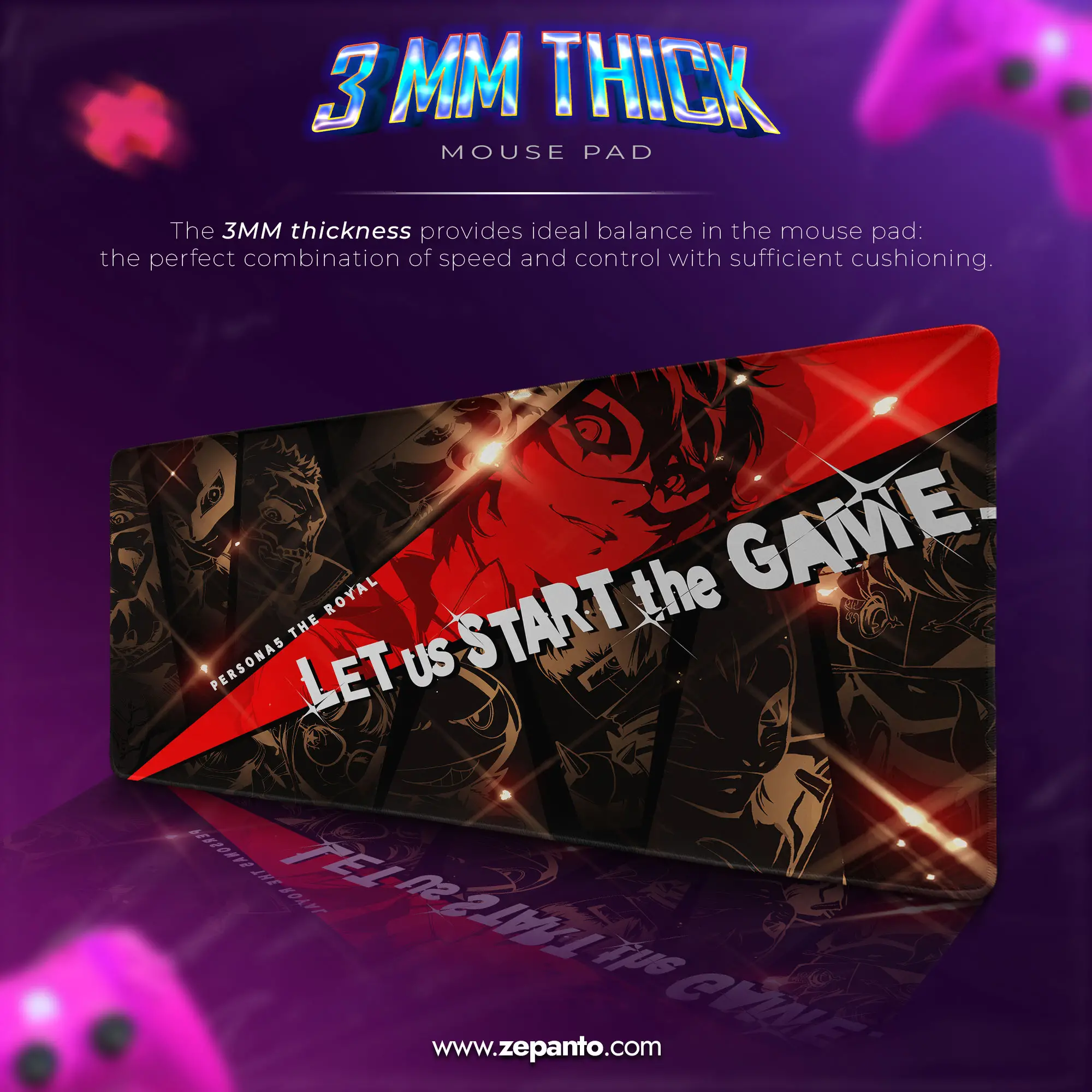 Every bold heist in Persona 5 Royal begins with a single phrase: “Start the game.” The Zepanto Persona 5 Royal Desk Mat, Start the Game mouse pad brings this iconic energy to your workspace, transforming your desk into a vibrant canvas for creativity, strategy, and smooth control. Whether you’re a dedicated gamer, an anime enthusiast, or a professional with an eye for style, this mouse pad elevates your setup with precision, flair, and unmistakable Persona 5 aesthetic.