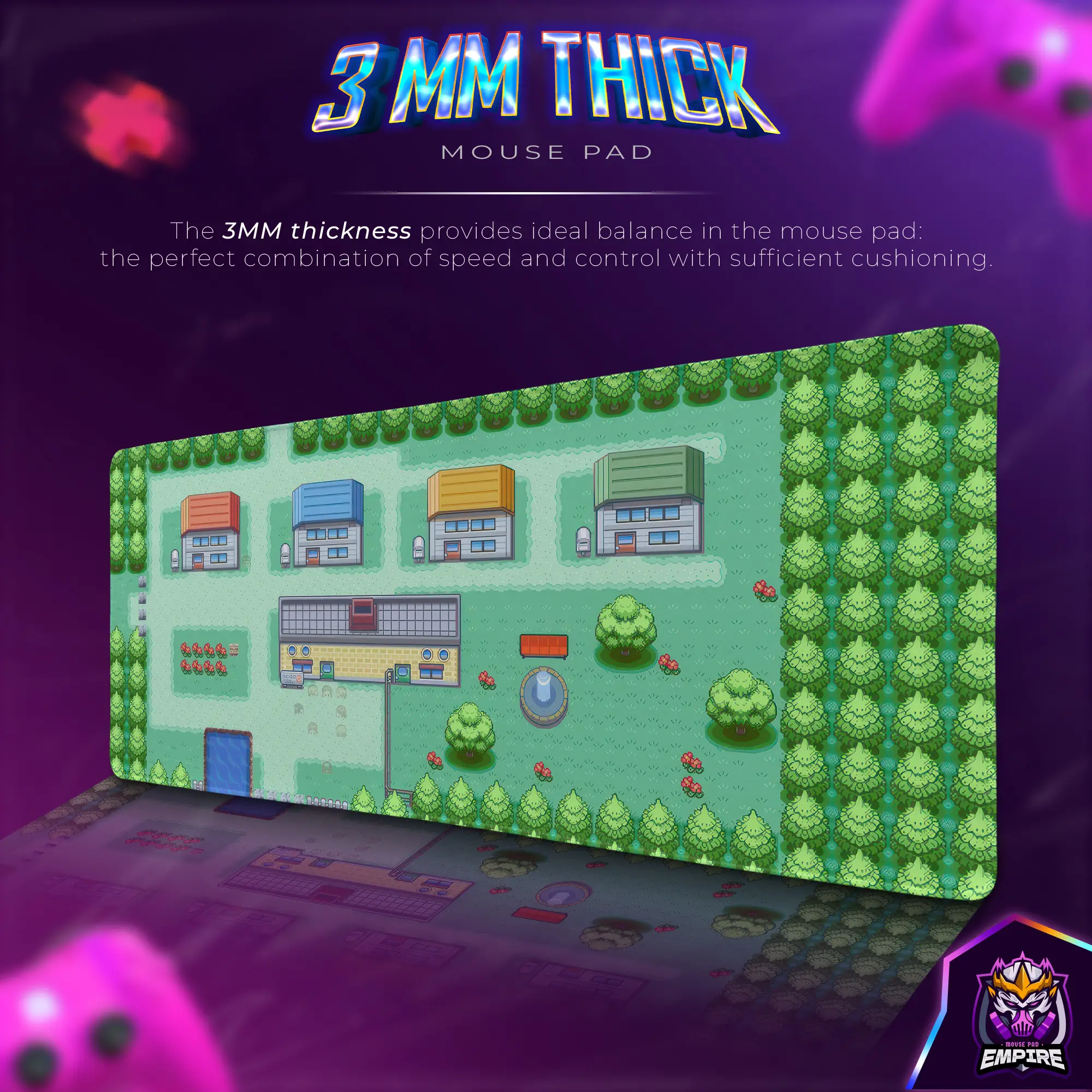 The Pixel Town Adventure Desk Mat is a high-performance gaming mouse pad, designed for retro gaming enthusiasts, pixel art lovers, and fans of classic 8-bit and 16-bit adventures. This Retro Game mouse pad features a high-resolution pixel art design of a charming town filled with colorful buildings, winding roads, lush trees, and hidden secrets, bringing back the nostalgia of classic adventure games. Whether you’re exploring pixelated landscapes, building your digital world, or upgrading your setup with a vibrant retro aesthetic, this gamer mouse pad delivers both stylish visuals and professional-grade performance.