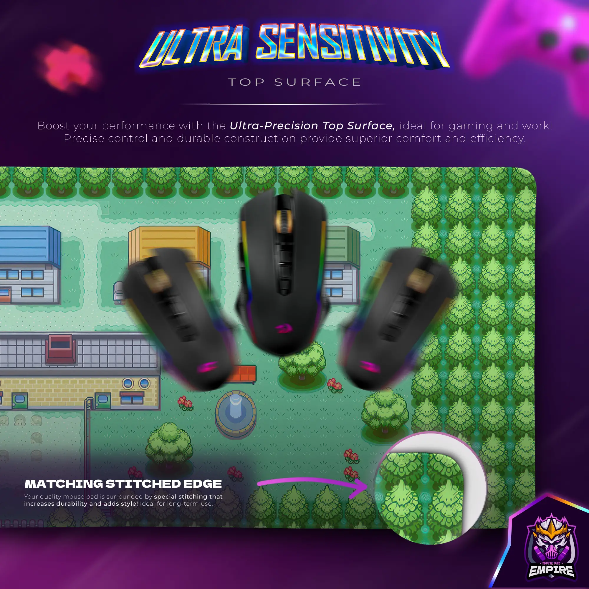 At Zepanto, we specialize in high-performance gamer mouse pads that merge precision, durability, and visually striking artwork. Our premium desk mats feature flawless tracking surfaces, reinforced stitching, and non-slip rubber bases, ensuring top-tier performance and longevity. Unlike standard mouse pads, Zepanto mats feature high-definition pixel art, water-resistant protection, and superior craftsmanship, making them ideal for gaming, work, and retro-themed setups.