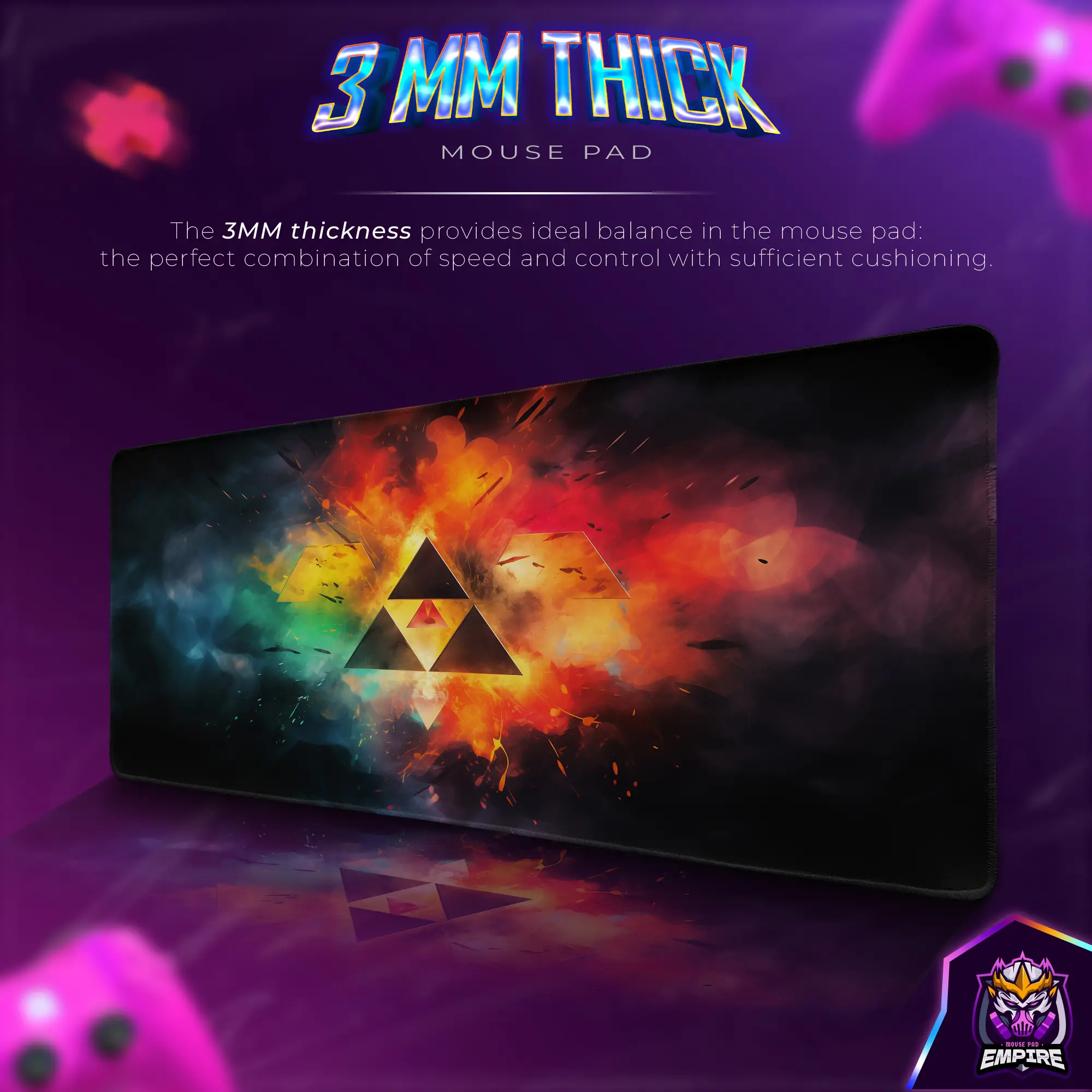 Crafted for elite precision and long-lasting durability, the ultra-smooth fabric surface ensures seamless and responsive mouse tracking, making every movement fast, fluid, and accurate for both optical and laser mice. The non-slip rubber base provides maximum stability, keeping the mat firmly in place, even during intense gaming battles. Reinforced stitched edges prevent fraying, while the water-resistant coating protects against spills, ensuring your glowing Triforce artwork remains vibrant and mystical over time. If you’re searching for a high-quality gaming desk mat that embodies the legacy and strength of the Triforce, the Triforce Legend Desk Mat is your ultimate symbol of power.